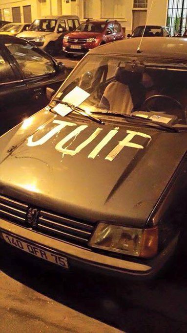 Yeah, they 'randomly' chose 20 cars to vandalize. But the use of the word Juif tells you whom they were after, eh Barack?